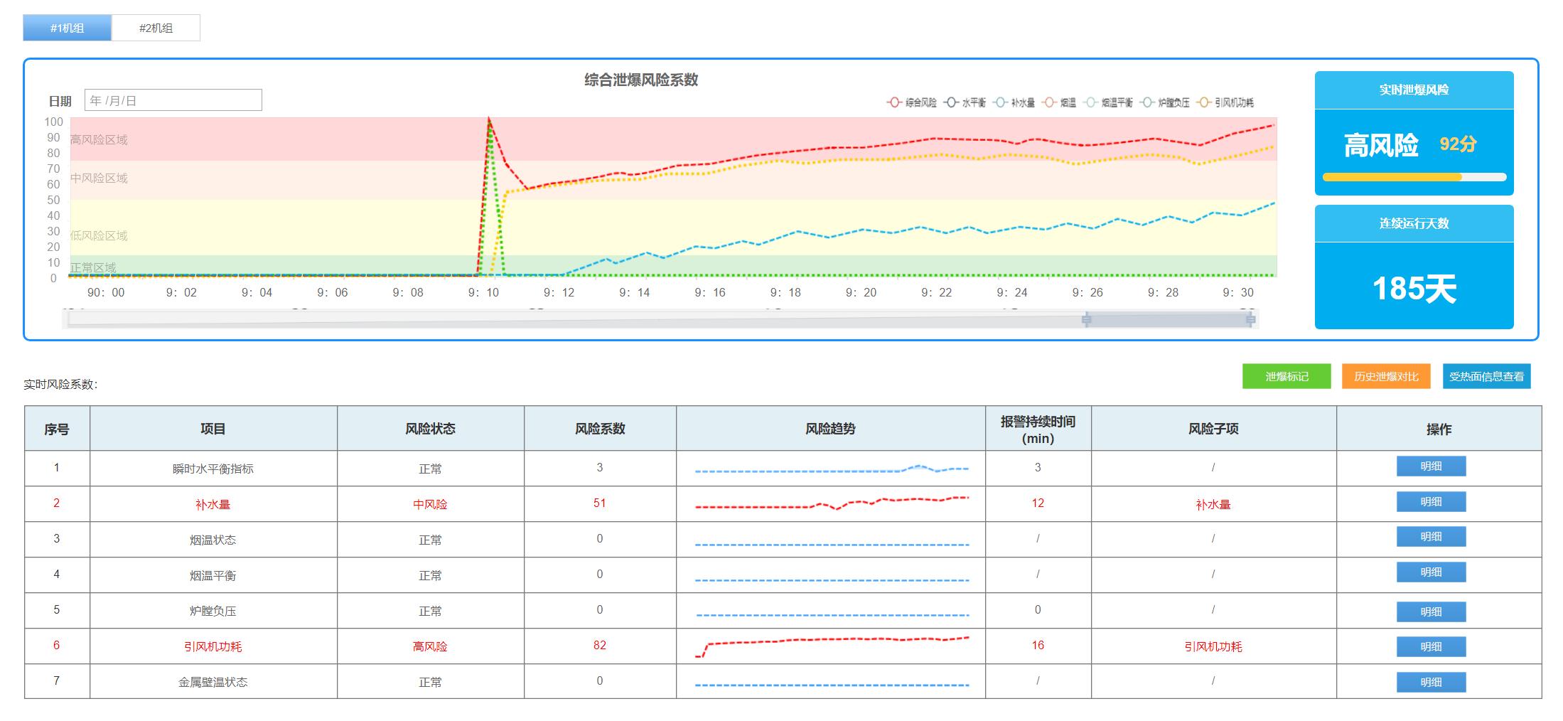 該功能模塊的核心在于構建泄爆監控指標,并基于歷史運行的大數據尋找指標在不同負荷下的合理區間。主要服務于日常監控和泄爆后的原因分析。