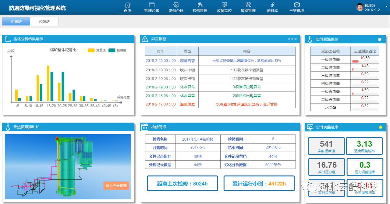 云酷科技多年來專注電廠鍋爐安全,通過對“四管”問題的深入研究,研發了三維可視化鍋爐防磨防爆系統,針對性的預防鍋爐泄爆等問題。系統憑借專業性和實用性深受用戶好評,能夠切實解決鍋爐安全管理問題。