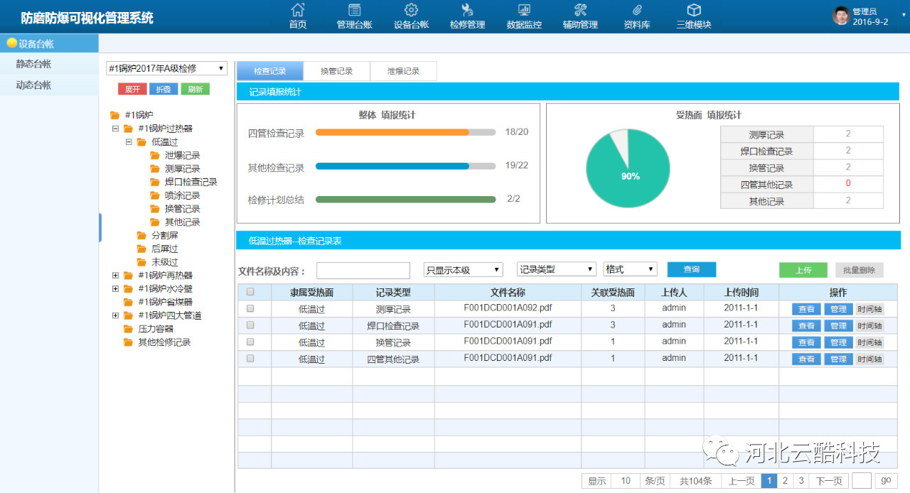 云酷科技多年來專注于電廠安全管理業(yè)務(wù),針對鍋爐安全問題所研發(fā)的三維可視化鍋爐防磨防爆管理系統(tǒng)充分結(jié)合了先進(jìn)的科技技術(shù)與電廠實(shí)際經(jīng)驗,為鍋爐安全管理、四管泄爆問題提供管理工具。